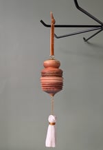 Hardwood ornament made on a lathe makes a perfect durable gift or personal ornament for a holiday tree or year round interest in the home. Cat friendly as it can be bobbed around and fall to the ground without breaking :D.