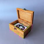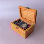 Handmade hardwood tarot deck box designed to fit a number of tarot and oracle decks in or out of their box and with or without a casting/altar/divination cloth. Simple but refined construction makes a sturdy and aesthetically pleasing box which may also be used for jewelry, dice, trinkets etc. Its just a very good little box.