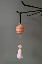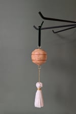 3" x 2.25" Maple Ornament with brass hardware and velvet ribbon with handmade cotton tassel