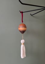 Hardwood ornament made on a lathe makes a perfect durable gift or personal ornament for a holiday tree or year round interest in the home. Cat friendly as it can be bobbed around and fall to the ground without breaking :D.